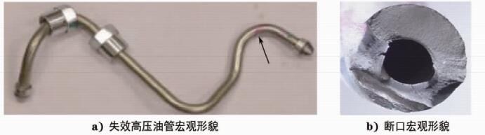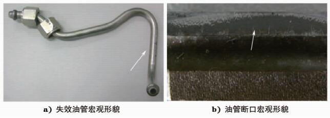 高壓油管的開裂失效涉及到的因素復(fù)雜多變。高壓油管通過壓力波將燃油以一定的壓力和速率輸送到噴油器,油管的長度、內(nèi)徑對發(fā)動機的燃油噴射特性有著不可忽視的影響,因此設(shè)計過程中對油管管材的選擇、油管形狀的優(yōu)化設(shè)計等都非常重要,不可隨意更改。高壓油管在工作中經(jīng)受來自發(fā)動機轉(zhuǎn)動帶來的受迫振動以及內(nèi)部高壓油對油管的脈動沖擊,受力環(huán)境相當惡劣。然而,實際工程中使用的高壓油管,因為設(shè)計錯誤導(dǎo)致高壓油管失效的情況很少出現(xiàn),而因為油管內(nèi)在質(zhì)量、裝配、使用不當導(dǎo)致的開裂失效則頻頻發(fā)生。對這些失效案例進行分析,找出導(dǎo)致失效的原因,并提出改進措施,修訂相關(guān)企業(yè)質(zhì)量內(nèi)控標準,對預(yù)防此類事故的重復(fù)發(fā)生,降低產(chǎn)品索賠率,甚至降低汽車火災(zāi)事故的發(fā)生等,都具有重要意義。