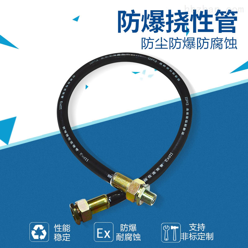 防爆撓性管具有耐燃、耐油、耐腐蝕、耐水、耐磨、耐老化、撓性良好、結(jié)構(gòu)牢固、工作可靠等優(yōu)點,廣泛適用于爆炸性混合物場所,作為防爆電器設(shè)備在電線敷設(shè)管路上,作為具有振動或彎曲設(shè)備的連接線配管之用,作為防爆電器設(shè)備的進(jìn)出線連接或鋼管布線彎曲難度較大的場所連接之用。防爆撓性管結(jié)構(gòu)軟管兩端為金屬螺紋活接頭,管體部分由金屬軟管組成。